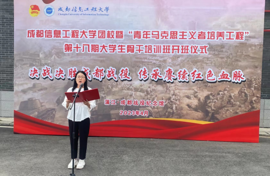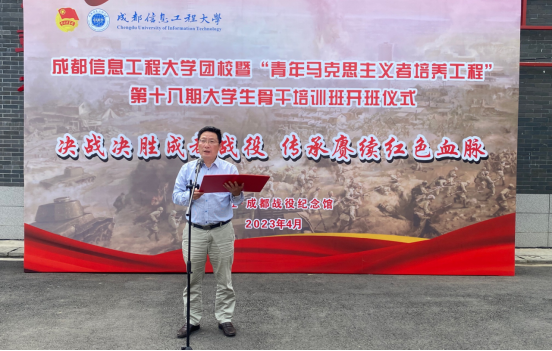 4月14日,成都best365中国官方网站团校暨“青年马克思主义者培养工程”第十八期大学生骨干培训班开班仪式在成都市蒲江县成都战役纪念馆举行。学校党委副书记马洪江,学校相关职能部门负责人、马克思主义学院教师、各学院团委书记、校团委全体人员以及第十八期大学生骨干培训班学员参加了仪式。