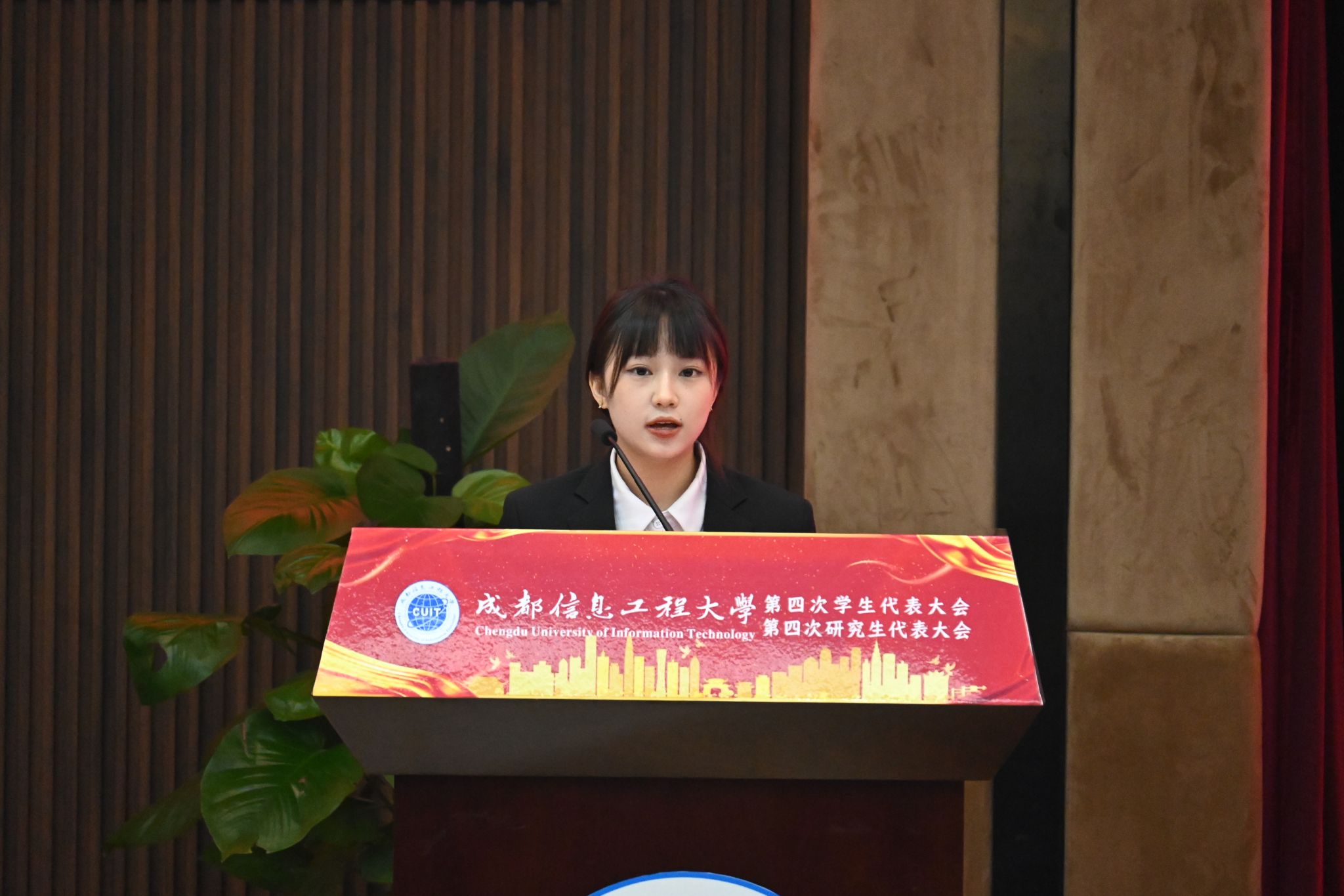 11月25日,成都best365中国官方网站第四次学生代表大会、第四次研究生代表大会开幕会在航空港校区国际会议厅举行。学校党委副书记马洪江,党委学生工作部、校团委负责人,四川省学生联合会执行主席王月佳、成都市学生联合会执行主席刘超言,以及288名学代会、研代会正式学生代表参加了本次大会。