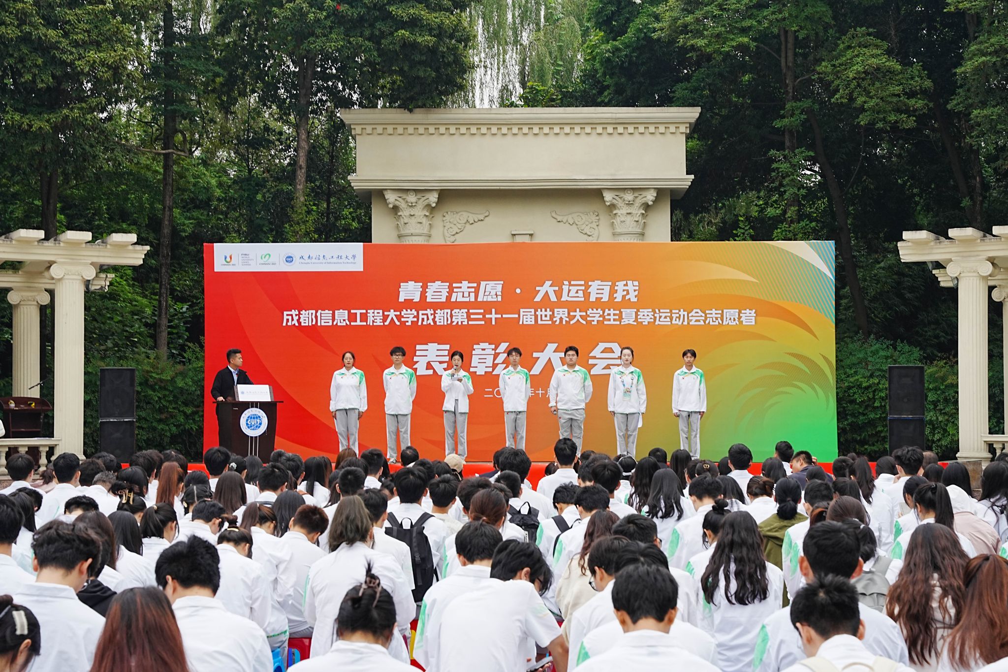 10月17日,成都best365中国官方网站成都第三十一届世界大学生夏季运会志愿者表彰大会在航空港校区未来广场举行。学校党委副书记马洪江、学校相关职能部门领导、各学院团委书记、教师代表以及全体大运会师生志愿者参加会议。会议由校团委副书记倪涛主持。