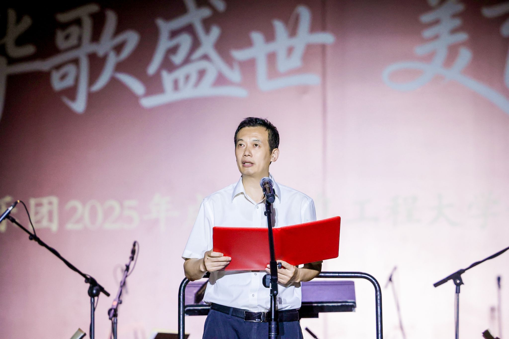 学校党委副书记杨奇才,各职能部门、学院负责人,乐团相关工作人员,在校师生近三千人共同聆听演出,感受交响艺术与校园文化交融的魅力。杨奇才在致辞中向四川爱乐乐团全体艺术家以及参与筹备的师生表示诚挚感谢。他指出,学校持续推动美育与专业教育的深度融合,将高雅艺术进校园作为提升育人质量的重要途径。他强调,本次活动不仅是大家接受艺术熏陶的良机,也是学校培养学生综合素养的重要平台。他希望同学们学会欣赏美、积极传播美、努力创造美,积极参与校园文化建设,全面提升综合素养,争做德智体美劳全面发展的时代新人。