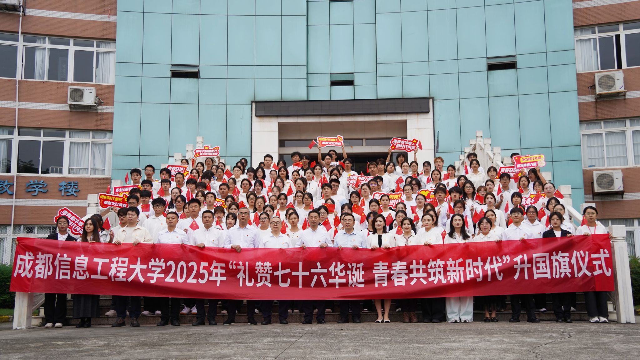 礼赞祖国七十六华诞,青春共筑新时代。学校举行升国旗仪式,既是对伟大祖国表达崇敬之情和美好祝愿,也是一堂生动的爱国主义教育大思政课,进一步激发了师生将爱党之情、报国之志、荣校之心融入日常的决心。全校师生将进一步振奋精神,踔厉奋发,紧跟建成教育强国战略目标,为成都best365中国官方网站发展的崭新篇章挺膺担当、贡献力量。