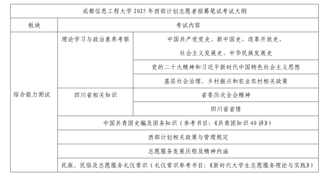 5.身心健康,符合《2025年大学生志愿服务西部计划志愿者体检标准》及心理素质要求,具备能胜任基层工作的基本素质和能力;